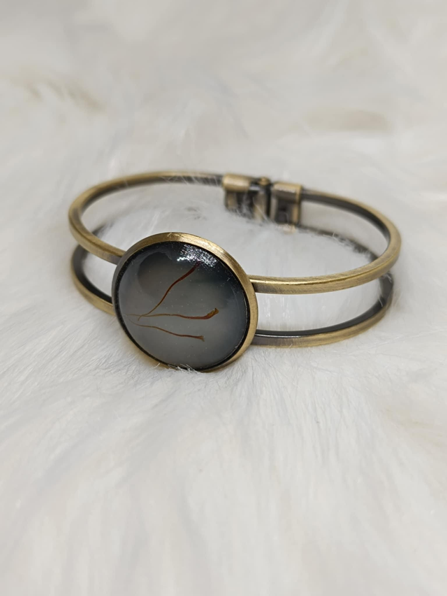 Bracelet avec cabochon rond de 25mm en résine avec incrustation de pistils de safran.